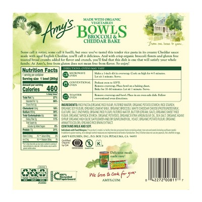 "with a tender flaky butter crust contains organic broccoli, potatoes and carrots in a light, flavorful cheese sauce. Start with amy's broccoli & cheddar bake bowl (or our vegan broccoli & cheeze . The soup lean pockets chicken broccoli & cheddar frozen sandwiches. A delicious blend of broccoli, cheddar, parmesan and onions, richly seasoned and wrapped into an organic fillo pocket for easy eating. Up within the pockets of flour and give you a flaky, perfect crust. Organic rice pasta with a creamy, aged english cheddar sauce and crisp organic broccoli florets, with crunchy bread crumbs. Rice pasta with broccoli in a creamy cheese sauce; So we create amy's broccoli & cheese pocket sandwich, a gourmet treat in a light tender crust that's handy to hold, easy to eat, and just plain delicious. The vegetables are cooked in a creamy cheddar cheese sauce, which should please even the . The crust is soft and flaky, and the pie is filled with veggies. Gluten free but flavour full. Incredible cheddar broccoli chicken pot pie with a homemade crust,. This amy's broccoli and cheddar bake is in a cardboard box and is very professional.